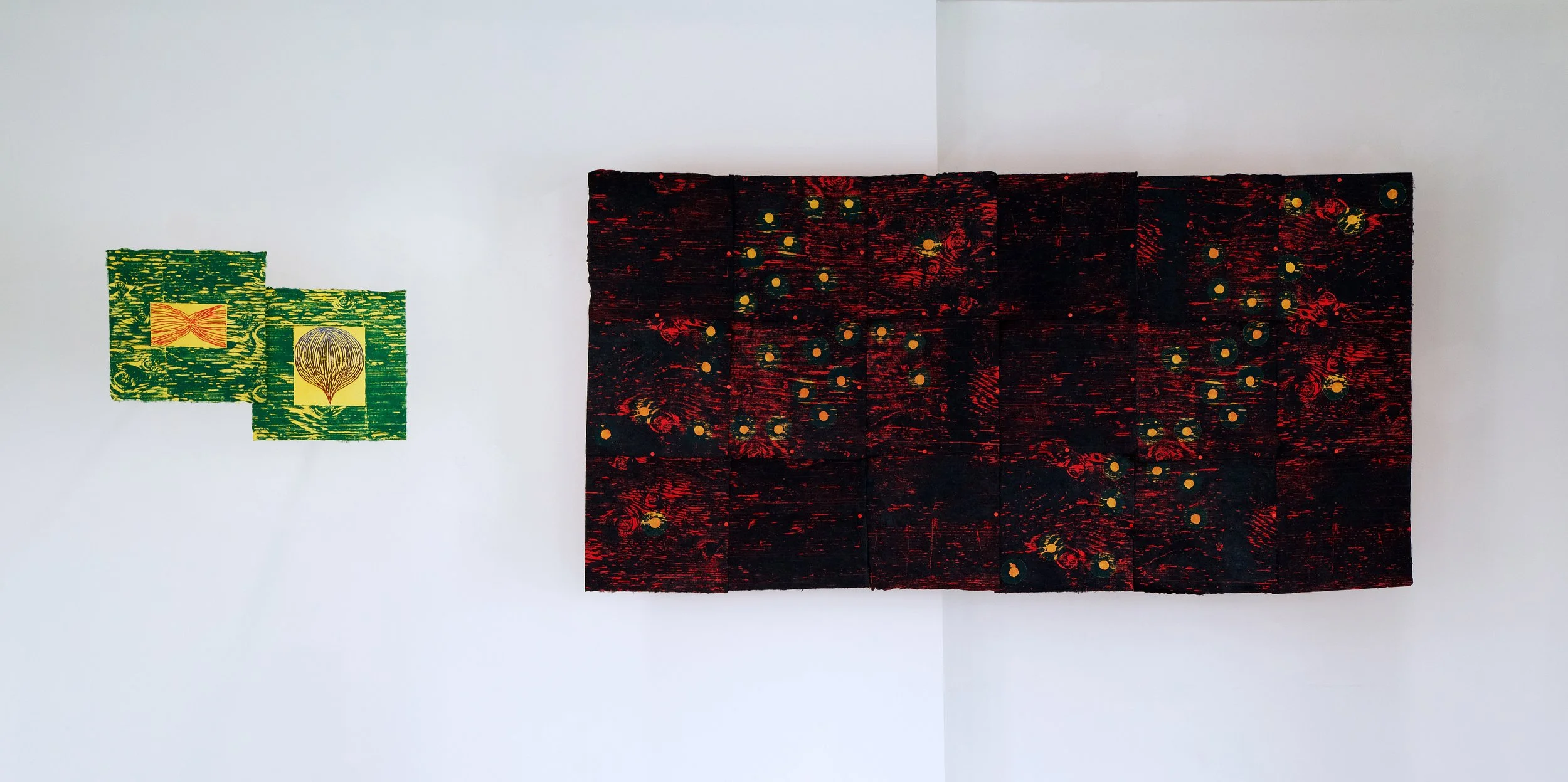 Wall Fire, woodblock prints on 30 sheets of handmade paper, 66”x85”, 2018