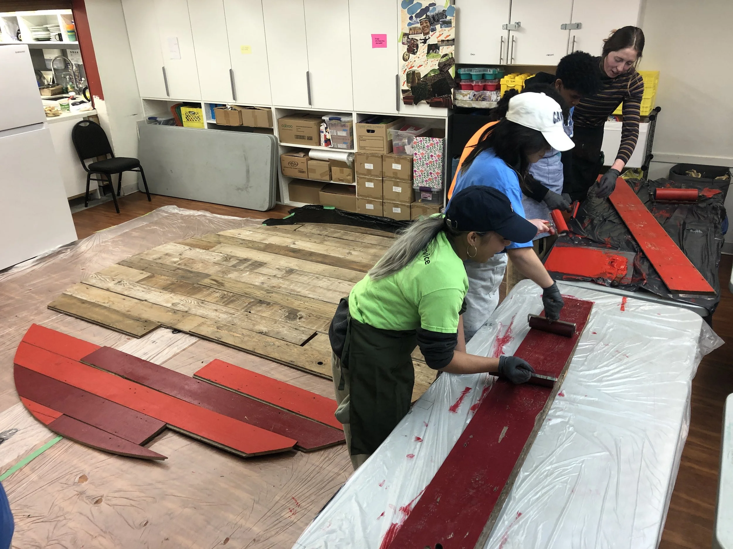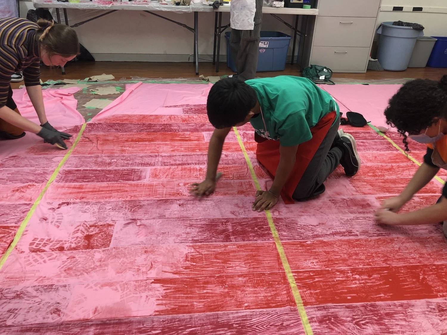 Ghosts Don’t Always Know They’ve Disappeared is a collaborative project exploring notions of belonging, memory and place amidst the changing landscape of Vancouver’s Mount Pleasant neighbourhood. The project began in 2022 as a series of public printmaking workshops in which community members were invited to collectively mono-print the salvaged façade of a demolished Vancouver home in various locations throughout the neighbourhood. Like a spectre, the prints toured Mount Pleasant as a series of site-specific installations and public activations.